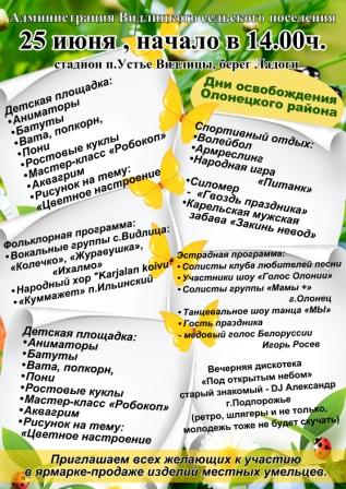 Программа прздничных мероприятий ко Дню освобождения Олонецкого района