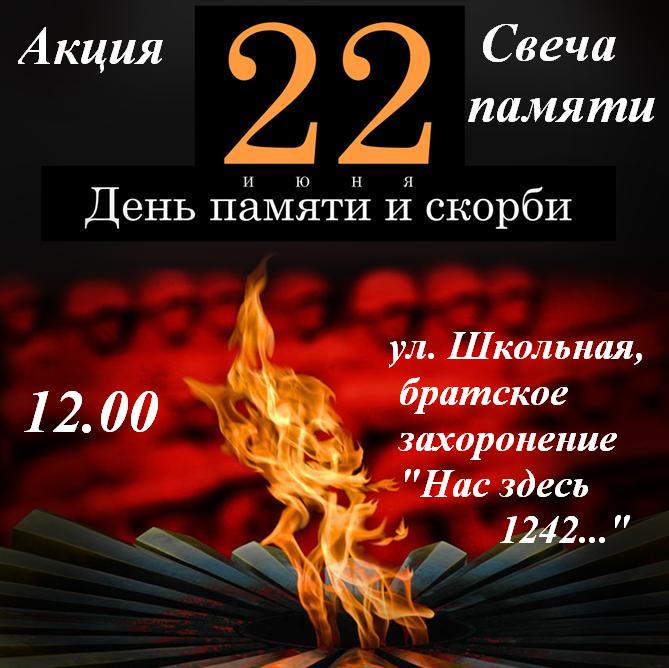 Каждый год 22 июня, в День памяти и скорби, проходит общенациональная акция «Свеча памяти».